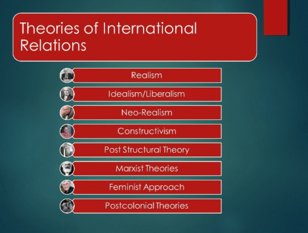 - This theory works with social convention and norms made by politicians around the world. This theory differs from realism, as it does not look at material wealth and power it focuses on image and respect.